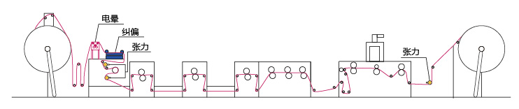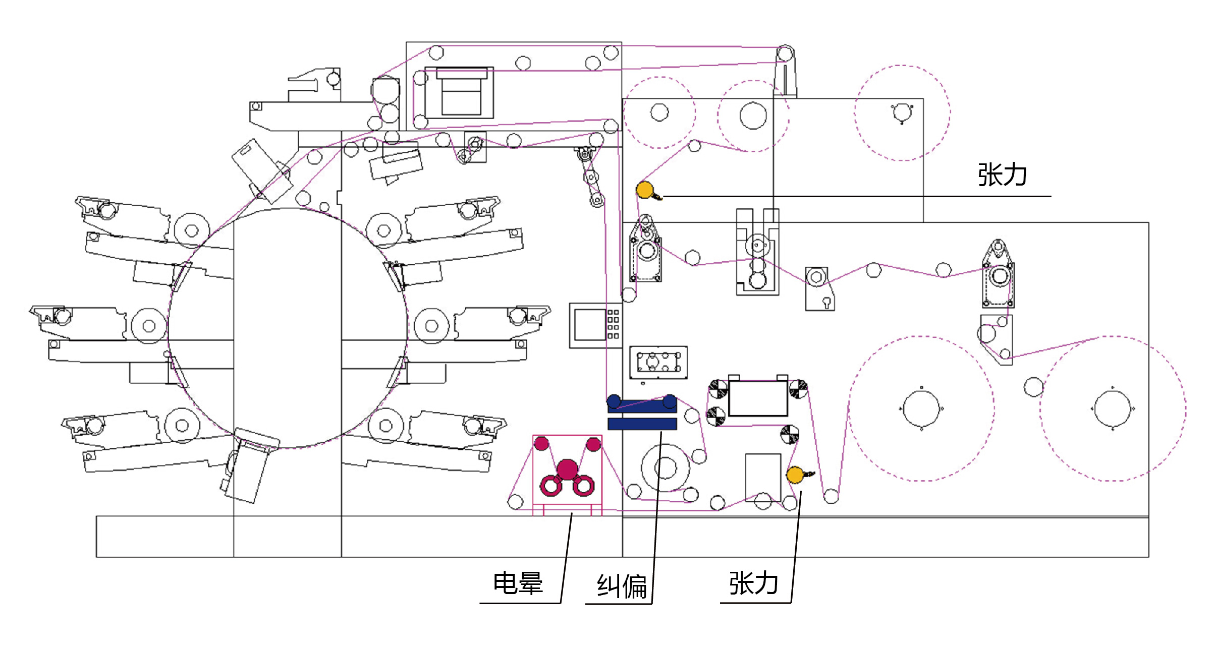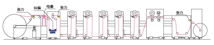 以下是糾偏、張力、電暈在印刷包裝、標(biāo)簽行業(yè)的應(yīng)用示意圖: