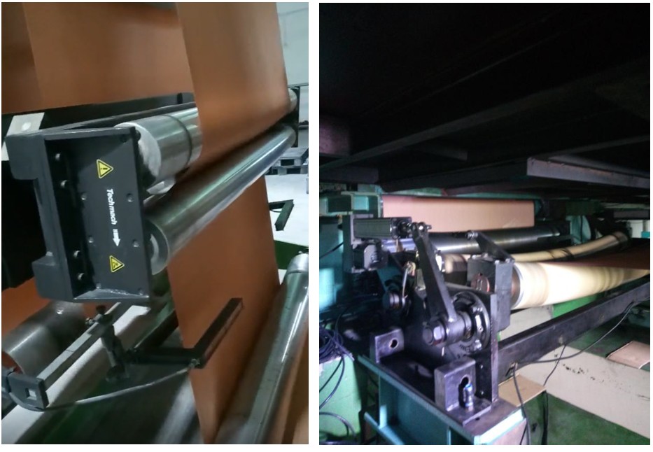 在胎面、胎側擠出生產線上,Techmach糾偏主要用在墊布的導開,CCD定中,CCD測寬,工作穩定,精度高,畫面實時顯示。